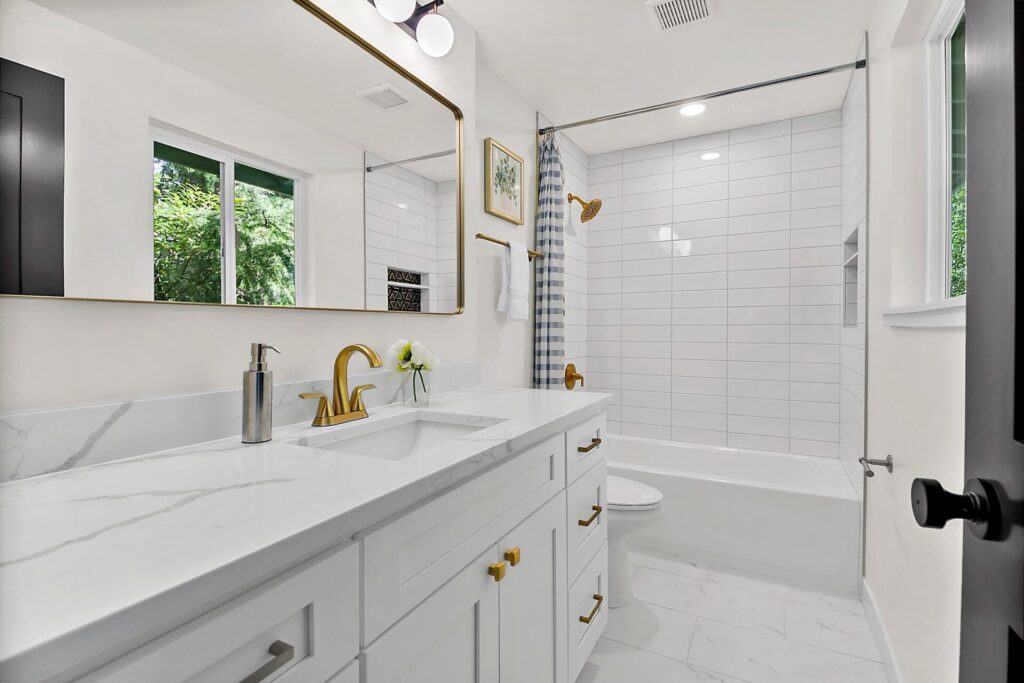 The situation: The bathroom is functional but the vanity is cracked, grout is stained, and the lighting is a single ceiling bulb. You want buyers to walk in and feel like they don’t have to touch anything.