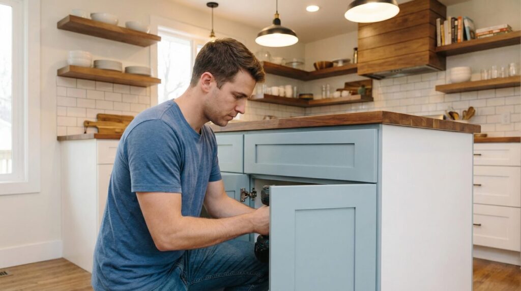 - Adding cabinet organizers, pull-outs, and storage accessories