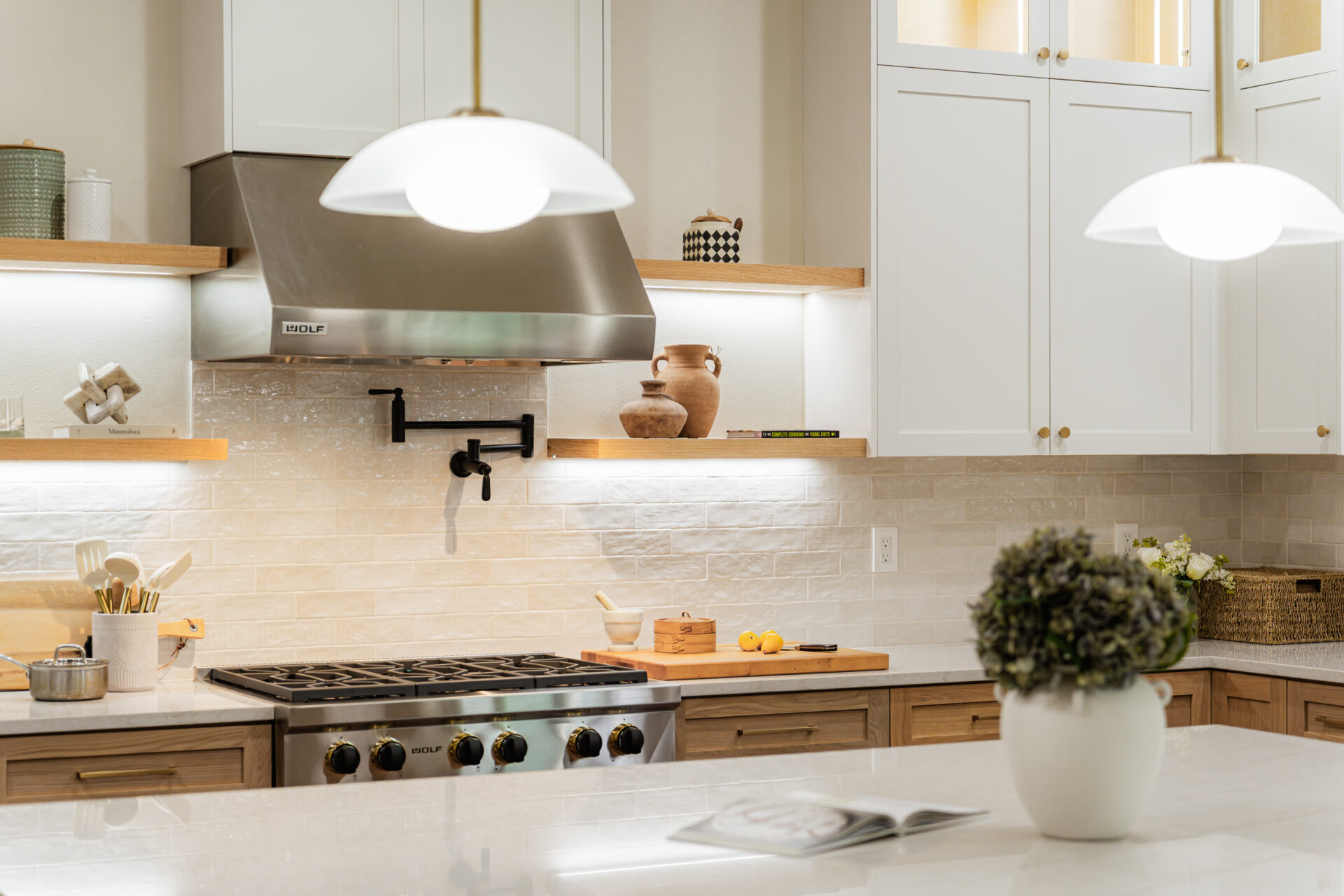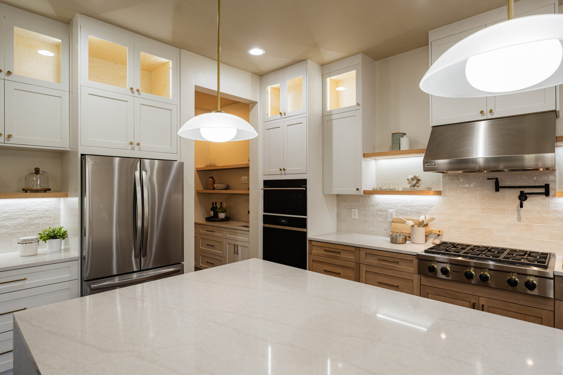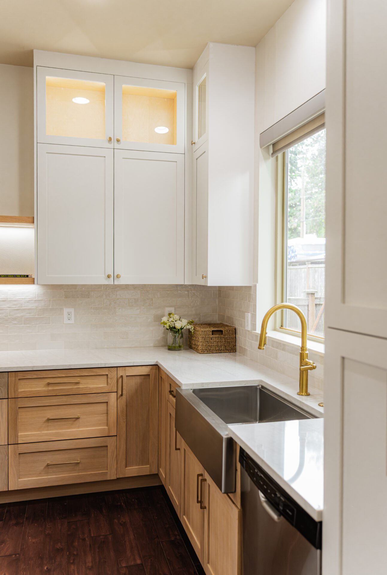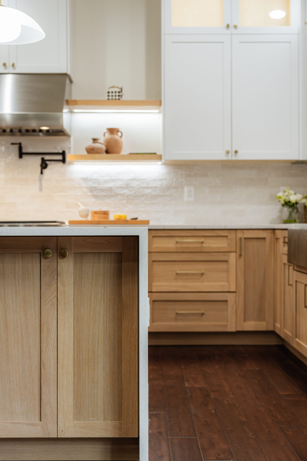 Custom kitchen cabinets in Mingo Oak and Ivory White