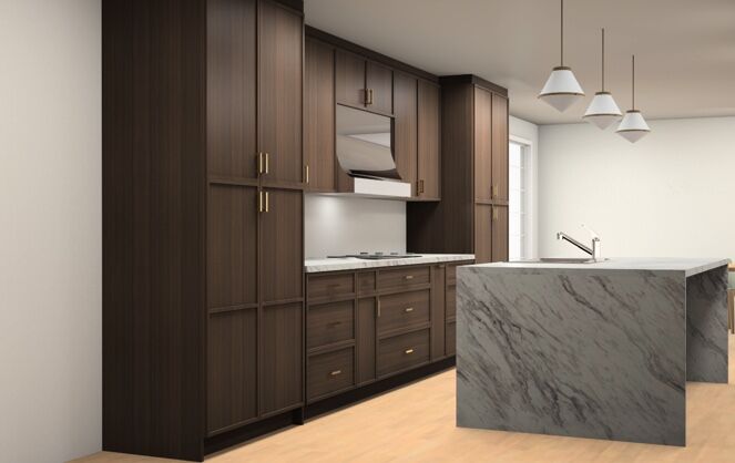 Pair walnut Slim Shaker kitchen cabinets with light quartz countertops for contrast, or go full walnut for a dramatic, moody aesthetic. Many Seattle homeowners also combine them with painted Shaker doors for a balanced, layered design. ?
