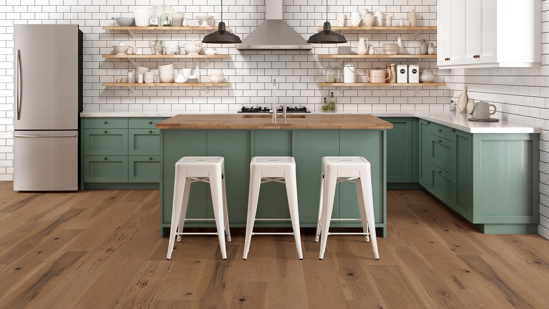 The Tempo design from the Abode by Kentwood Collection brings a sense of natural rhythm to any space. Each 7½” wide engineered hickory plank captures the raw charm of hardwood with brushed texture, vibrant grain patterns, and rich tonal movement. Subtle knots and natural variations give every board its own character, creating a floor that feels both modern and timeless.