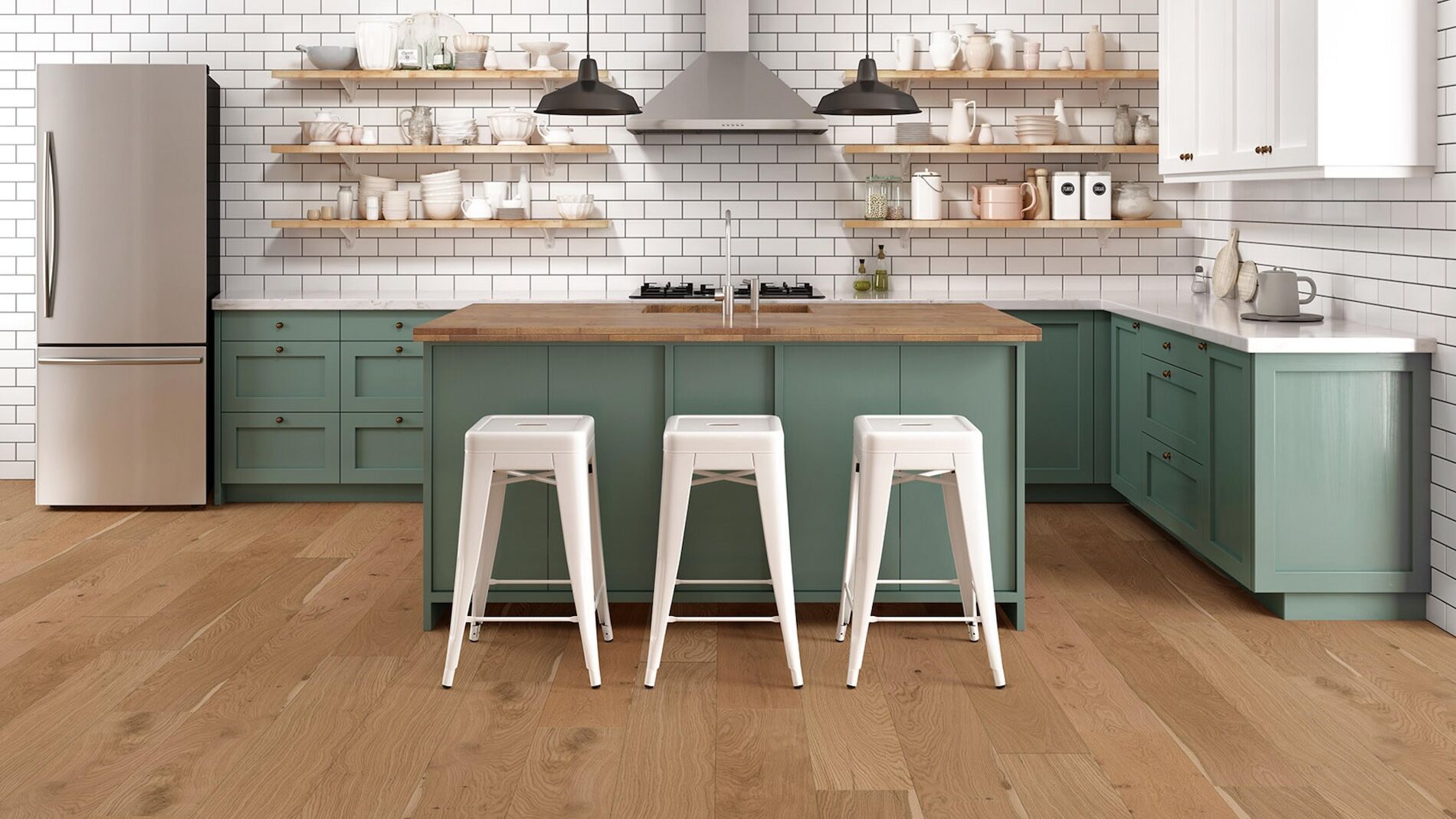 Designed for flexibility and lasting durability, this floor can be installed on, above, or below grade by nail, glue-down, or floating methods – even over radiant heat. The brushed surface enhances grain definition and hides everyday wear beautifully.