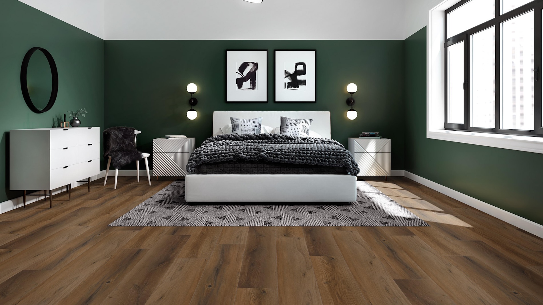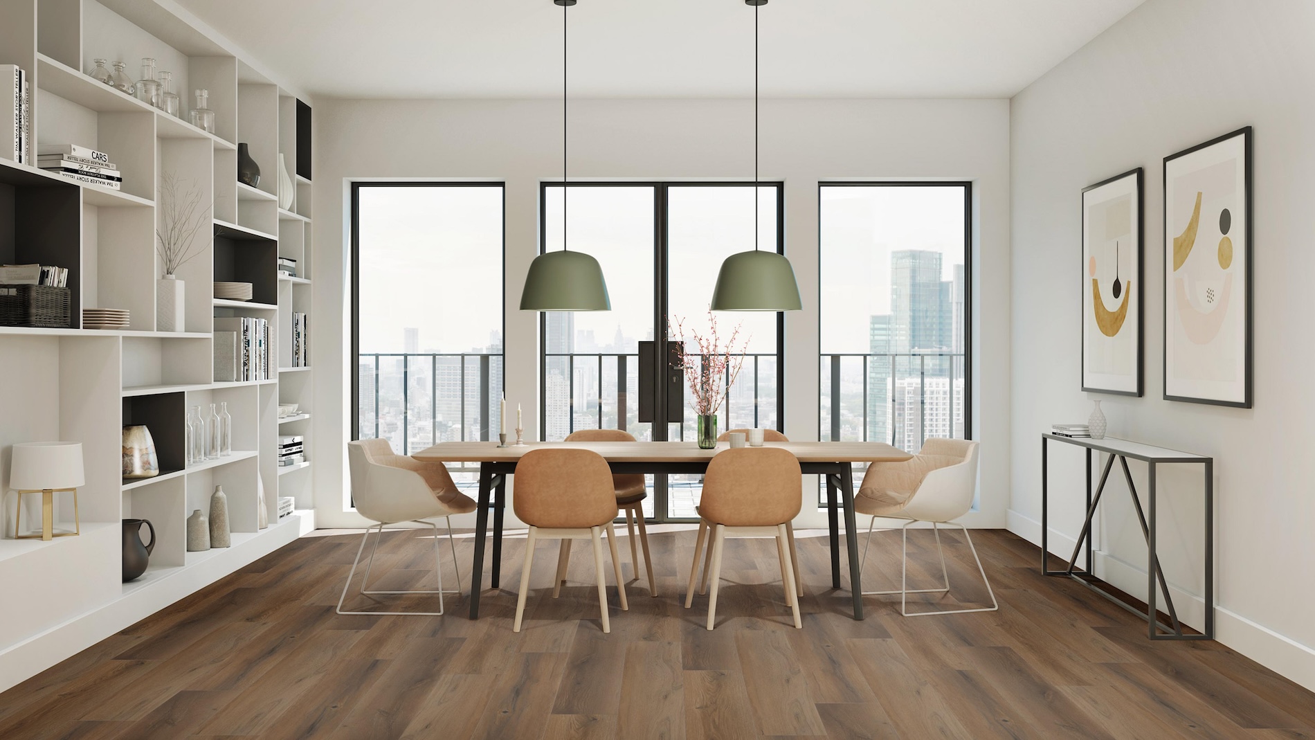 A contemporary rigid core flooring with a real-wood look, extra-wide planks, and beautiful EIR texture. Waterproof, durable, and finished with Diamante Shield™ for long-lasting performance.