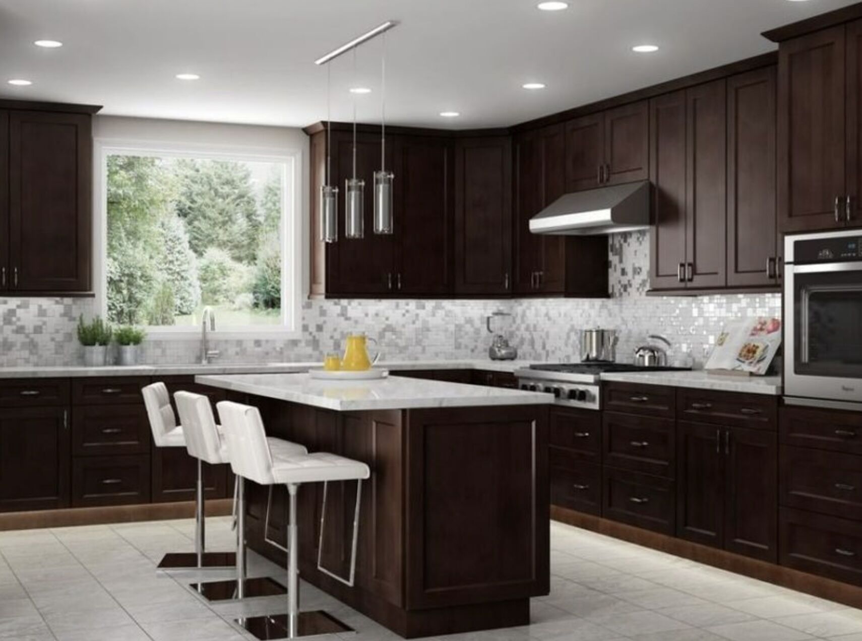 Every aspect of the Espresso Brown Shaker has been crafted with attention to detail, from the plywood boxes that provide sturdy support to the soft close feature of the doors and cabinets, which adds a touch of sophistication to the user experience. The deep espresso stain enhances the natural wood grain, adding depth and character to the shaker-style door’s flat panel and simple frame design.