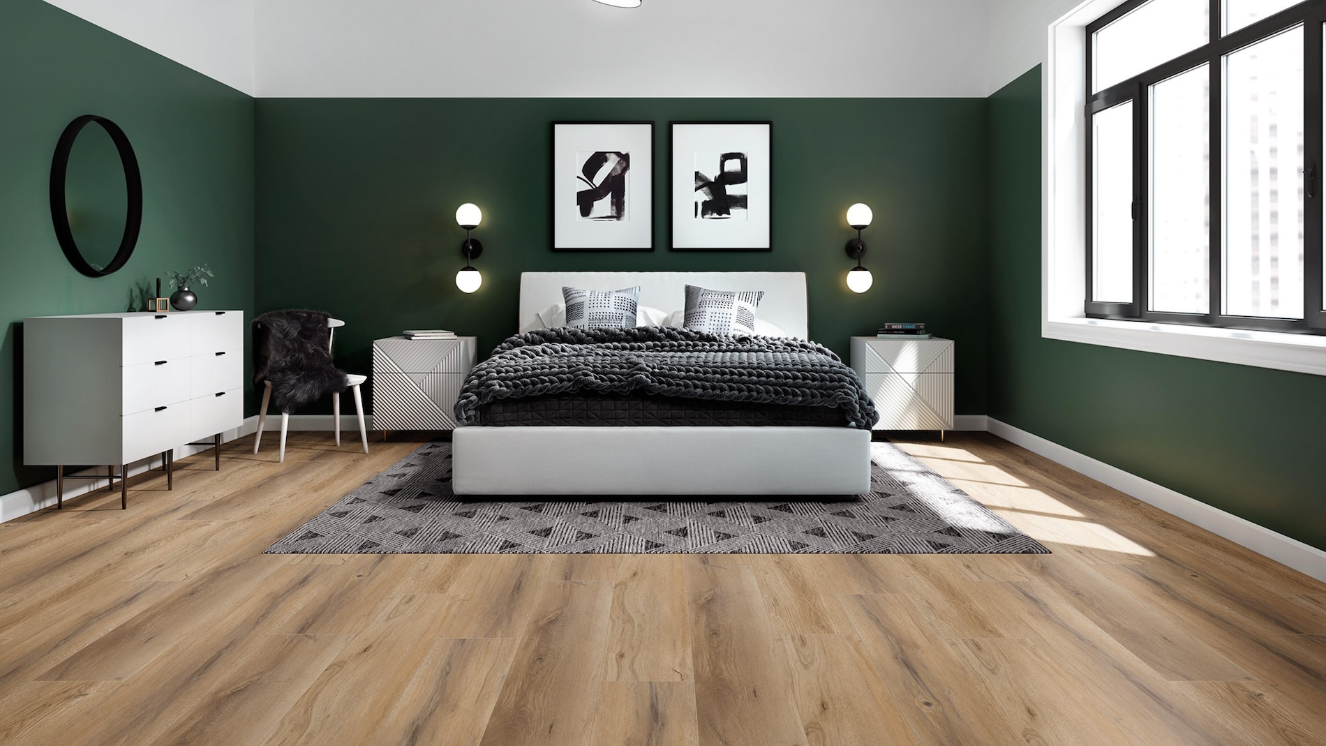 Howie blends the warmth of real wood with the resilience of waterproof rigid core vinyl. The Terrace Collection highlights extra-wide 9″ planks, realistic EIR texture, and contemporary tones designed for modern Northwest homes. Finished with Diamante Shield™ and built with an attached underlayment, Howie offers durability, comfort, and a clean, natural look that works beautifully in any space.